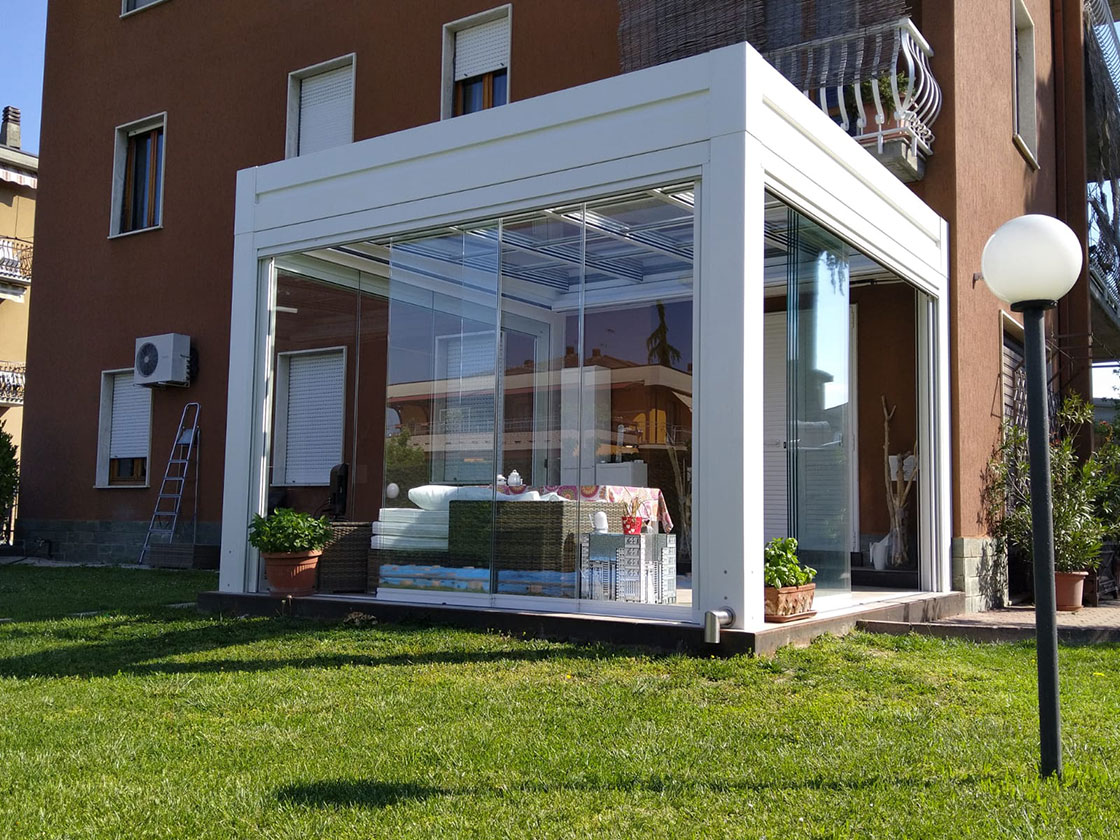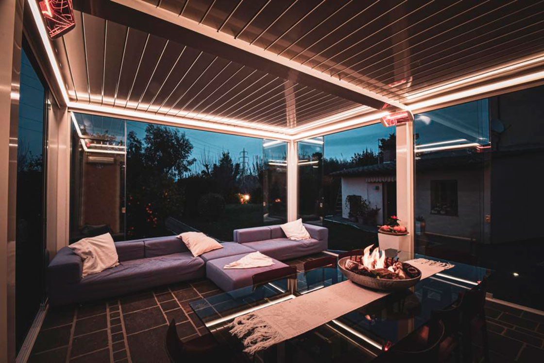 Le schermatura si completano con l’integrazione di chiusure vetrate perimetrali, grazie alle quali ogni pergola garantisce una chiusura perfetta anche in condizioni meteorologiche avverse rendendo il proprio terrazzo perfettamente protetto, creando cosi una stanza ulteriore da vivere stagione dopo stagione.