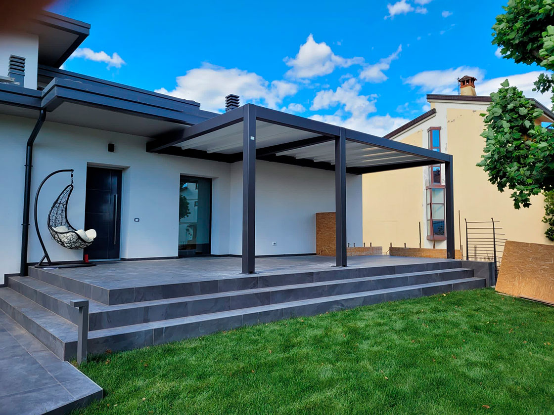 Le vetrate panoramiche esaltano lo stile architettonico della pergola per terrazzo, che sia dell’interno che dall’esterno appare sempre un’ambiente discreto e luminosa.